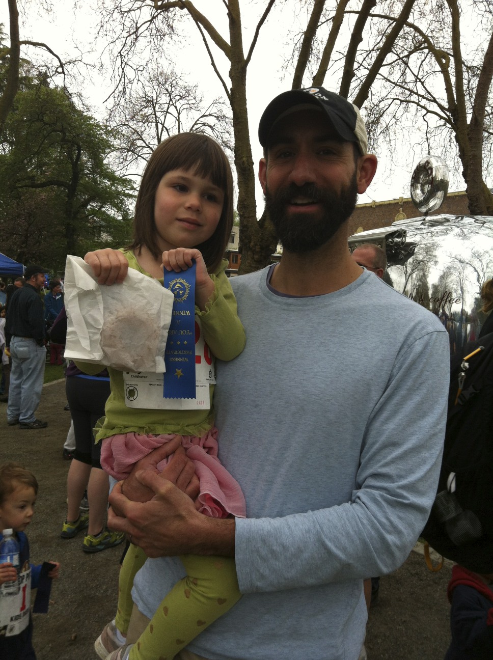 On Sunday, Ellie (and Ben) completed her first Kids Dash. It was at nearby Green Lake. She ran the entire 1k race! I cheered them on at the finish line, and then Ellie picked up her celebratory Top Pot doughnut!